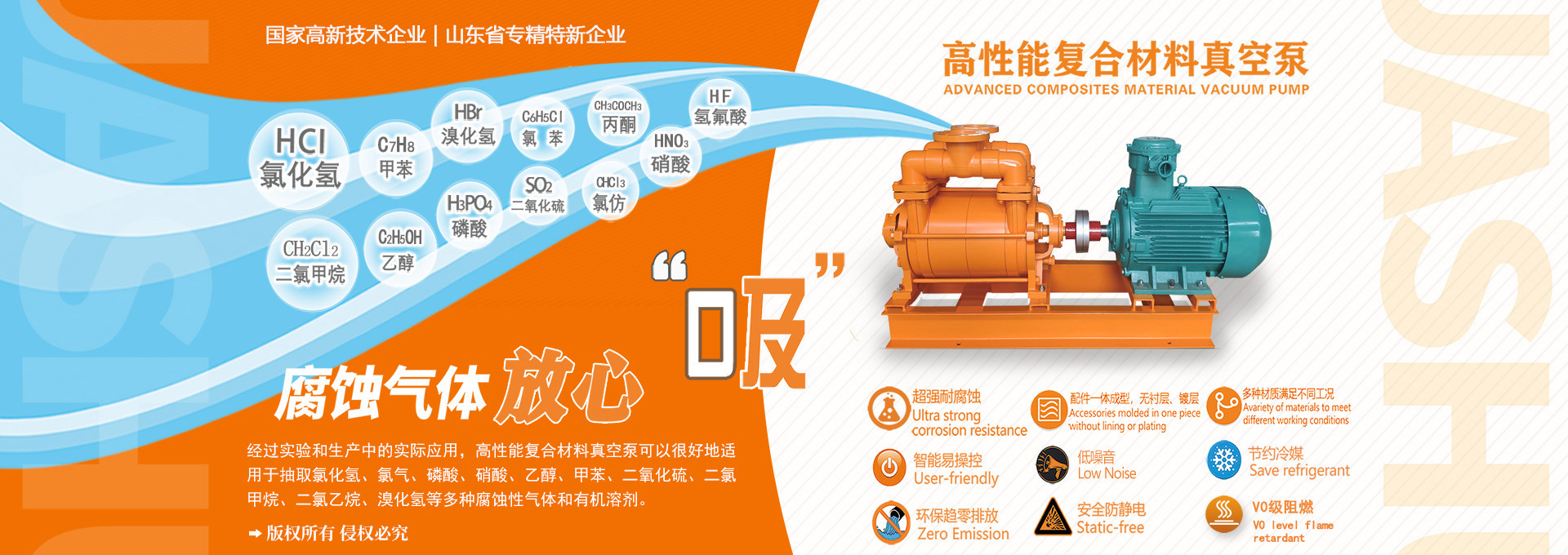 淄博華舜耐腐蝕真空泵有限公司所生產(chǎn)的防腐水環(huán)泵,防腐蝕水環(huán)泵,耐腐蝕水環(huán)泵等產(chǎn)品,產(chǎn)品過流部件采用三大系列高性能復(fù)合材料(HS-V130、HS-V110、HS-V80)一體成型,耐腐蝕范圍廣、無襯層不脫落、節(jié)能效率高、運行可靠、環(huán)保節(jié)水、 體積小、重量輕、使用壽命長等特點。 淄博華舜耐腐蝕真空泵有限公司是一家集科研開發(fā)、設(shè)計咨詢、生產(chǎn)、銷售、服務(wù)于一體,利用新型高性能復(fù)合材料,專業(yè)生產(chǎn)耐腐蝕液環(huán)真空泵的國家高新技術(shù)企業(yè), 坐落于“中國泵業(yè)名城”---山東省淄博市博山區(qū),公司通過了ISO9001質(zhì)量體系認證。公司獨立研發(fā)的具有多項自主知識產(chǎn)權(quán)的專利產(chǎn)品-耐腐蝕系列水環(huán)式真空泵,通過了省級科技成果鑒定,處于“國際先進水平”。 在全體員工的共同努力下,公司榮獲國家高新技術(shù)企業(yè)、科技創(chuàng)新示范企業(yè)、創(chuàng)新型優(yōu)秀新產(chǎn)品一等獎、科技型中小企業(yè)、山東省“專精特新”企業(yè)、省級一企一技術(shù)研發(fā)中心、淄博市專利獎、高價值專利獎、山東省民營經(jīng)濟知名品牌等榮譽稱號。2021年與山東大學(xué)聯(lián)合成立海洋耐腐蝕材料聯(lián)合實驗室及裝備產(chǎn)學(xué)研合作基地。